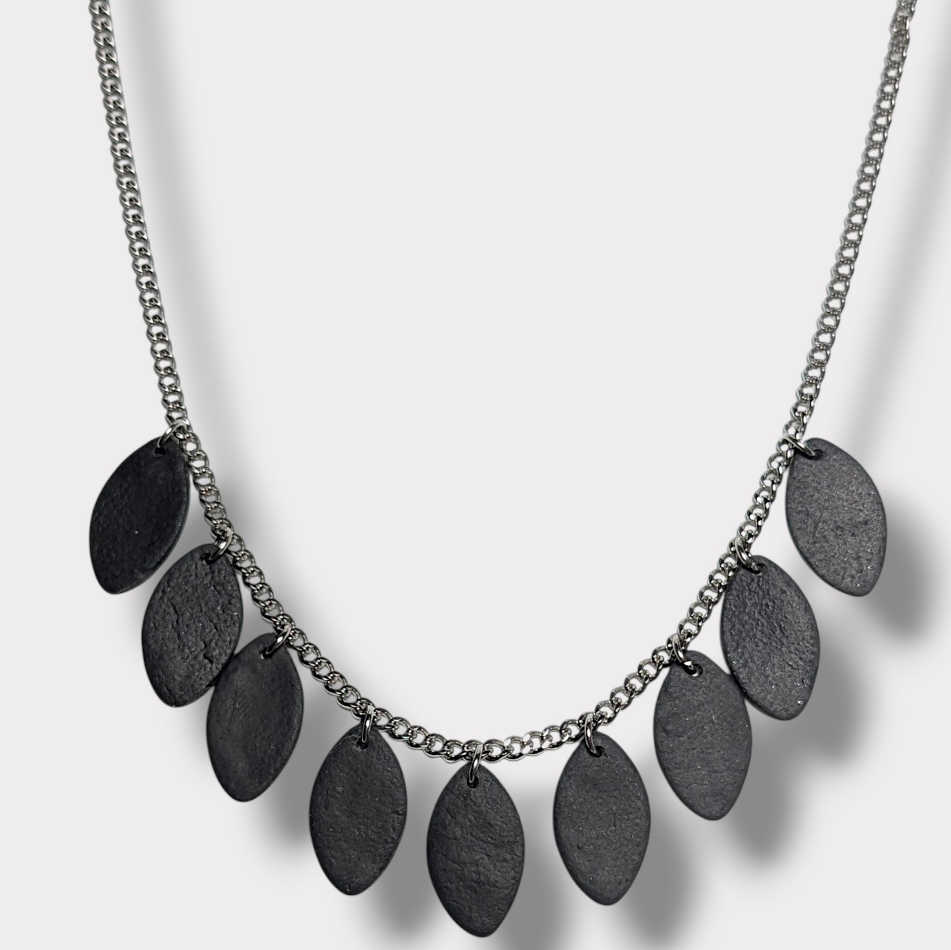 Handmade necklace with delicate oval elements that gently follow the line of the chain. Minimal, lightweight, and effortlessly elegant — designed to add subtle character to everyday looks.