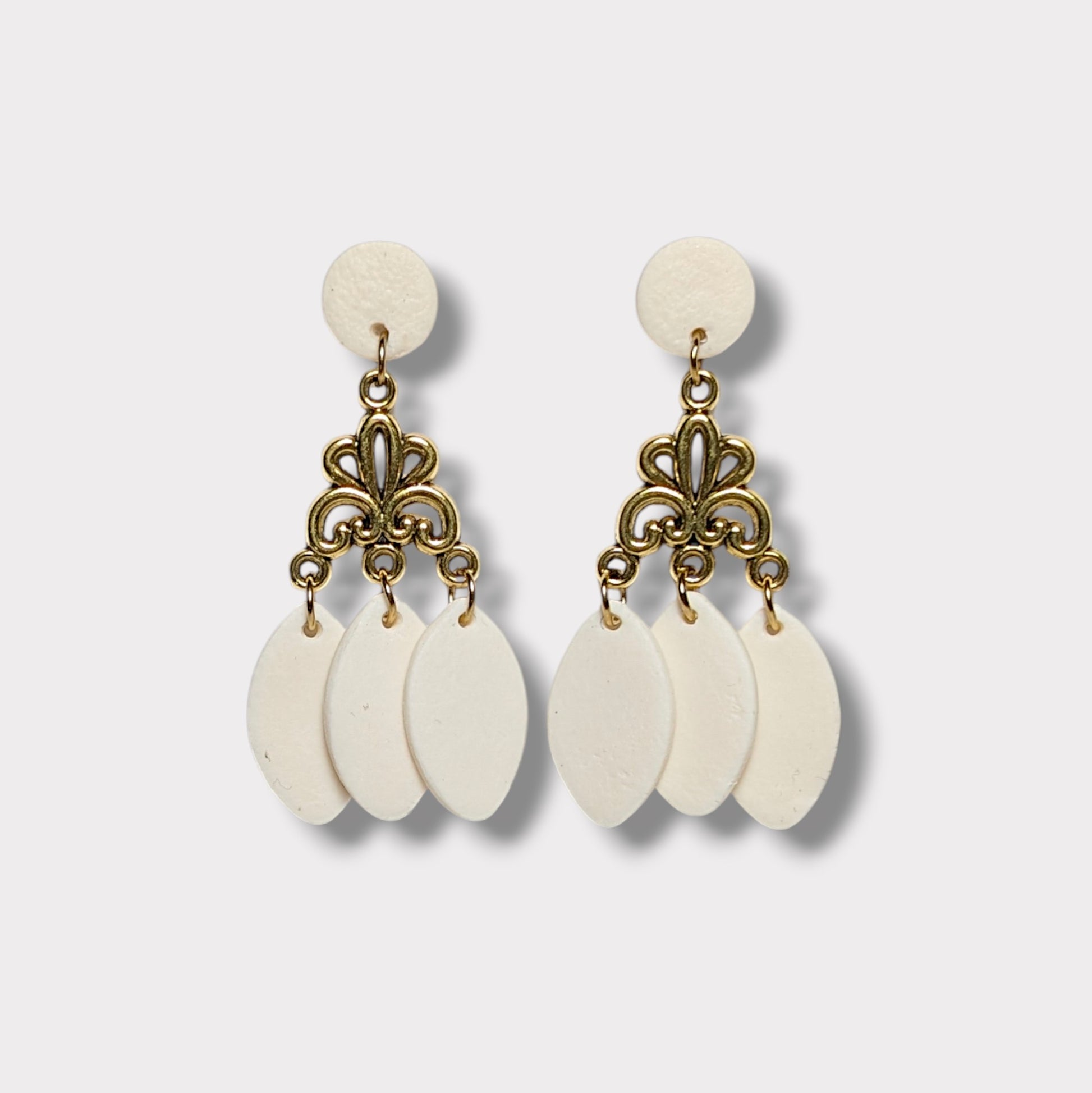 Handmade earrings featuring delicate oval elements and an ornate metal detail. Light, elegant, and full of character — designed to move beautifully and add subtle drama to everyday looks.