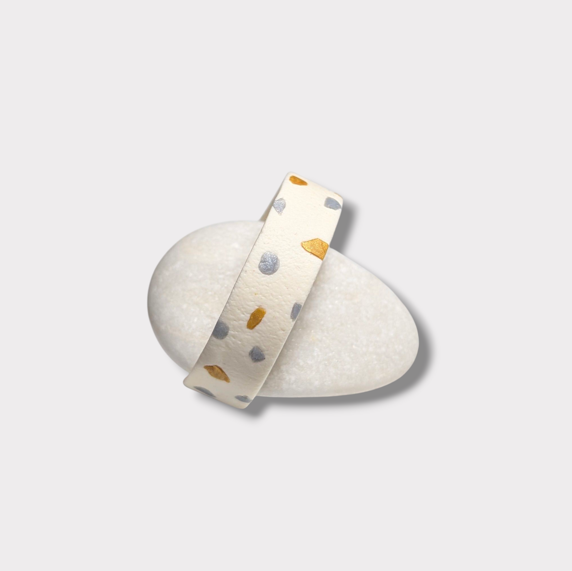 These chunky terrazzo-inspired bracelets bring the party with splashes of gold and silver on sleek black and creamy white. Bold yet playful — perfect for when your outfit needs a little ‘oh wow, where’d you get that?’ energy.