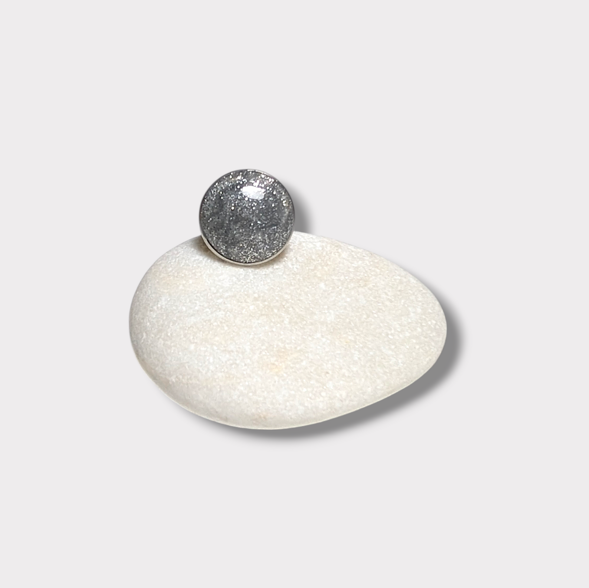 Handmade ring with a glossy circular detail and a subtle shimmer finish. Minimal yet playful, designed to catch the light and add a soft statement to everyday looks.